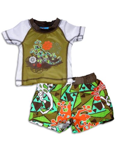 Buy Baby Buns - Infant Boys Lizard Swimsuit Set, Brown, White Free Shipping.