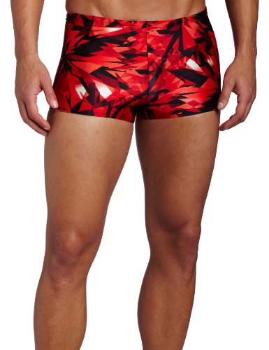 Speedo equals better fit, performance, quality, and innovation. the shattered glass square leg swimsuit is a race inspired allover print from our men's fashion line with a durable polyester front liner and drawstring waist for a secure fit that doesn't bind or gap. it features trademarked xtra life lycra which lasts 5 to 10 times longer than traditional lycra. so no bag and sag, and it looks like new for longer. the square leg is ideal for lap swimming, hot tubbing, or while sunning poolside or at the beach. look and feel your best in or out of the water, while you play, train or win in speedo, the choice of champions.